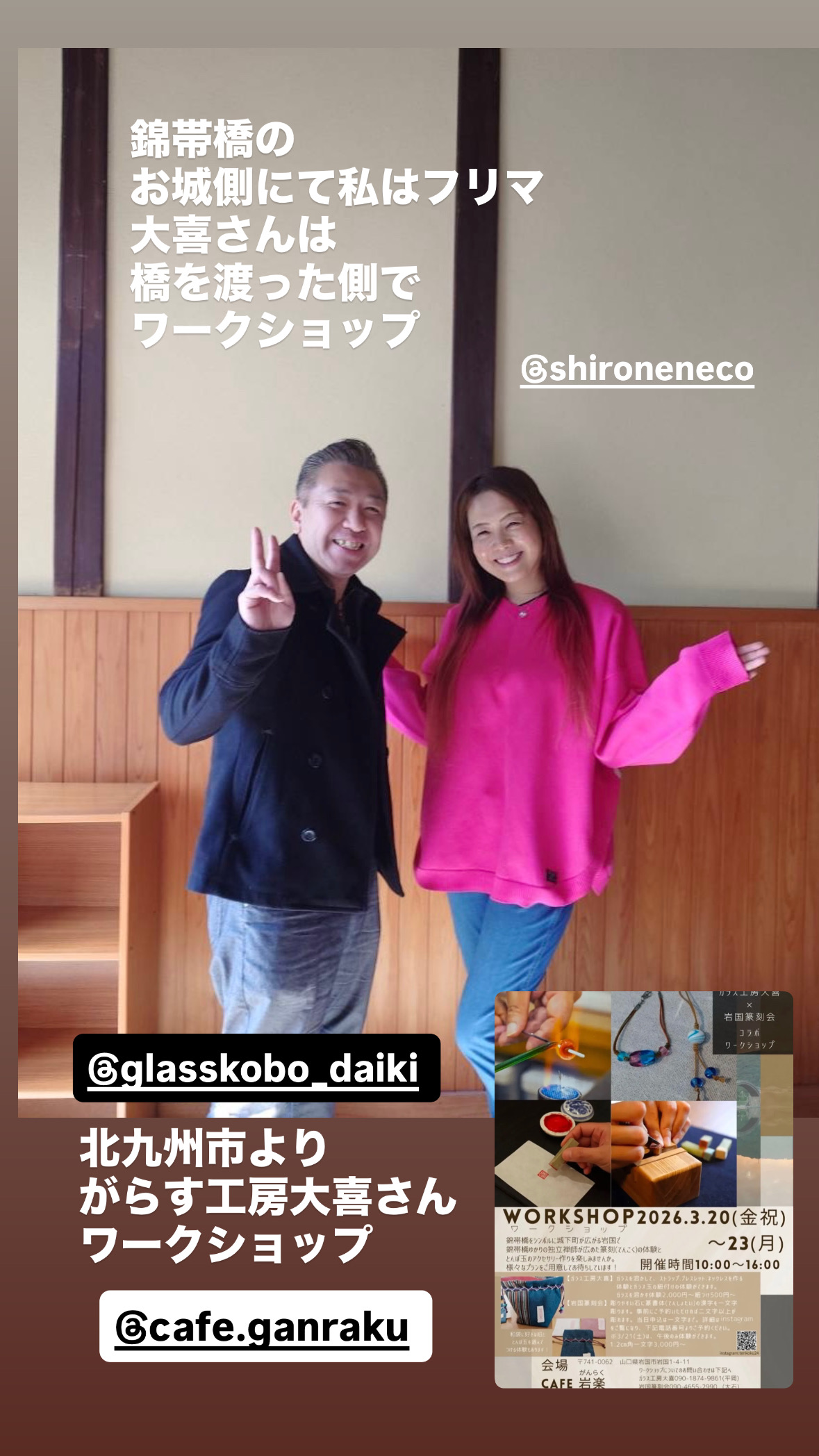 北九州市の黒崎にある「がらす工房大喜」さんが、錦帯橋を渡った側でワークショップをされていて、ちらりと遊びに来てくださいました♪