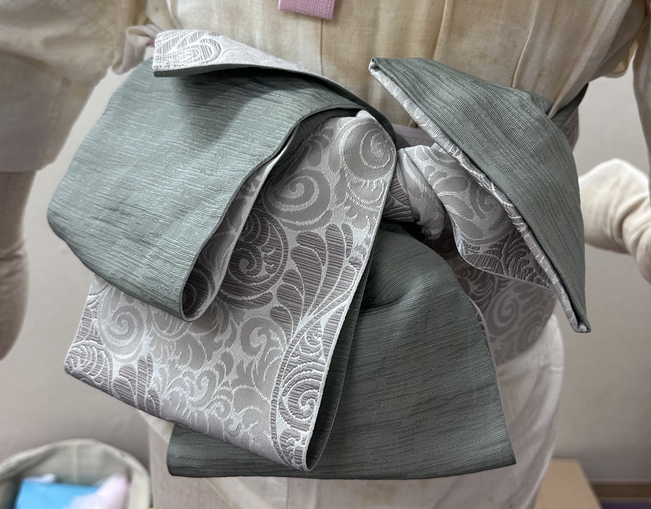 今日は半幅帯のバリエーションを増やしたいとのことで、トルソーをお借りしていつくかご案内☆