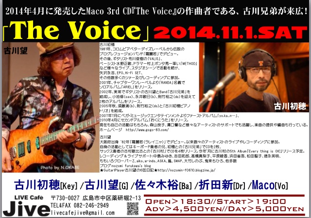 2014/10/28 本年の、広島ラストライブ! あと、4日後となりました(^^) 世の中は、3連休なのですね! お出かけや帰省されている方が多いようですが、、、 がんばりますっ( ´ ▽ ` )ノ 4月に発売したCD『The Voice』の作曲者さんでもある、古川初穂さんkey & 望さんgt ご兄弟さま、お二方に来広いただきますー♪ 日本を代表される超一流の〈音〉を、肌で感じてください(^^) わたしは、ご縁に恵まれており、このように、日本のトップミュージシャン方と、ライブをご一緒していただく機会がたくさんいただけています。 それは、本当に、奇跡的な光栄なことなのです。 その環境に、慣れ甘えることなく、 わたし自身が、皆さまのレベルに近づけるよう、がんばっていく、感謝の気持ちを持って、ライブを大切に過ごしています。 一流になるには、一流を感じること。 どの世界でも、 また、自分と違う世界であっても、 一流を感じること ずっと、それだけを求めてきました! 本年の広島の締めくくりとして、11月1日のライブ、頑張ります(*^^*) 皆様あそびにきてねー!! ![]() |