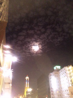 時々、雲に隠れたりしながら、丸いお月様光ってました。
