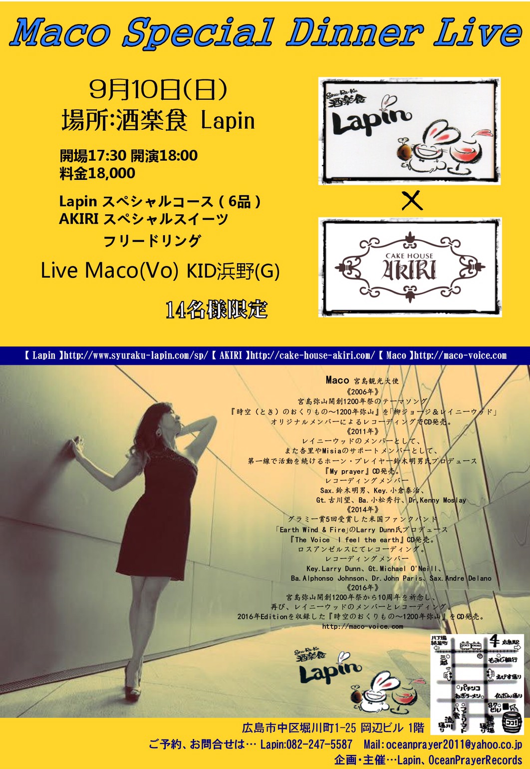 9月10日(日)に、ディナーショーをさせていただく、ラパンさんへ(o^^o)