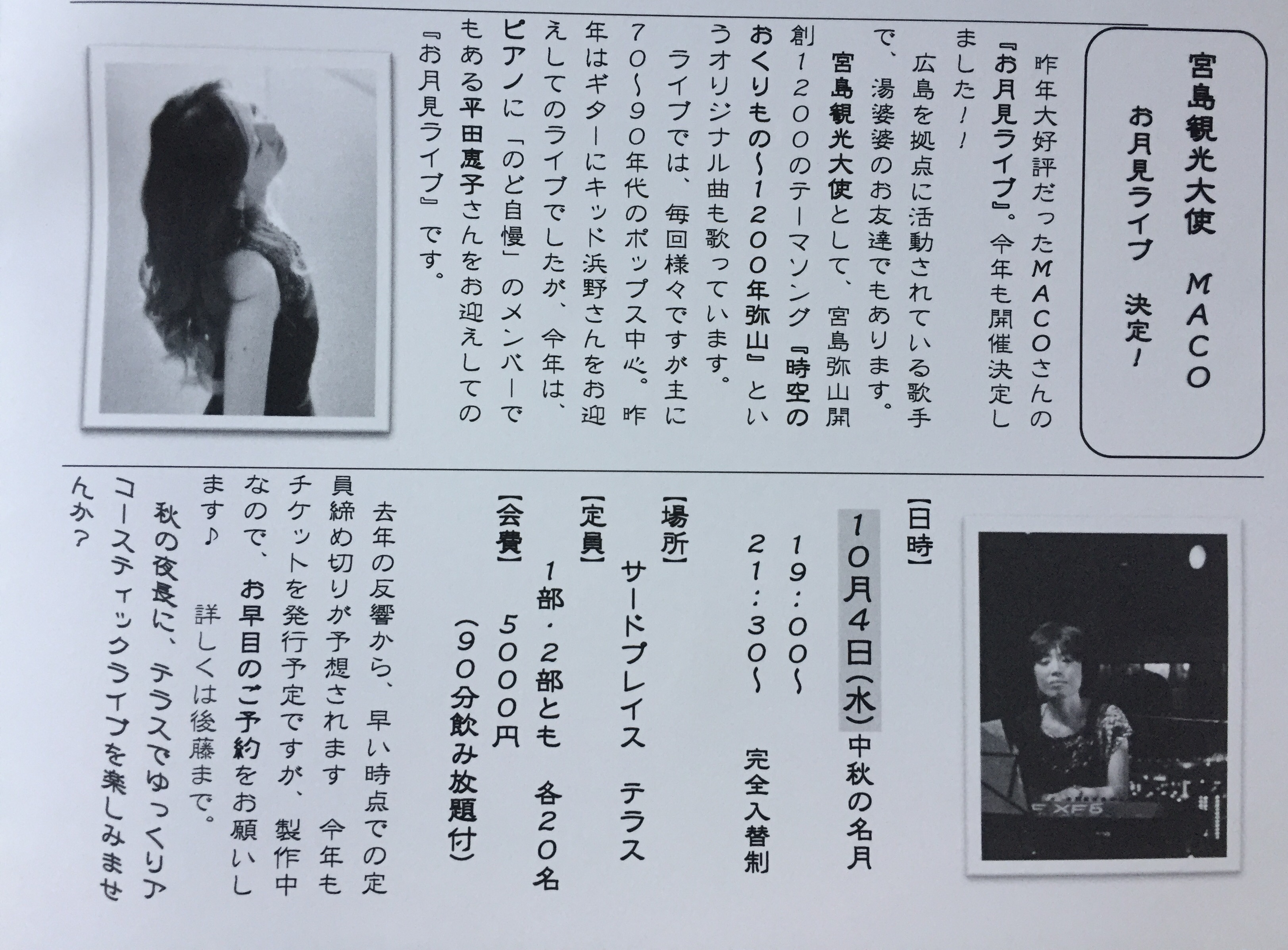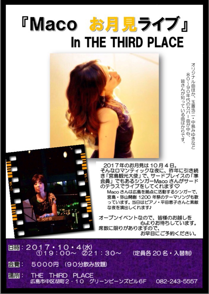 10/4水曜は、会員制バー「サードプレイス」さんで、お月見ライブ。