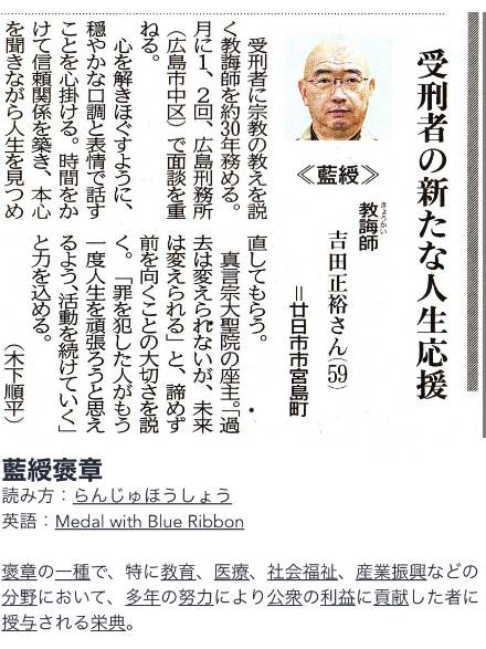 この度、わたしが歌わせて頂いているテーマソングの宮島・大聖院様の吉田座主様が、藍綬褒章を受章されました。
