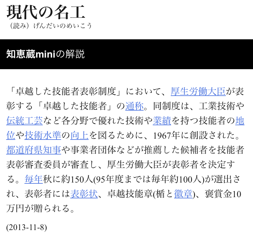 黄綬褒章を受章する数年前には《現代の名工》に選ばれました。
