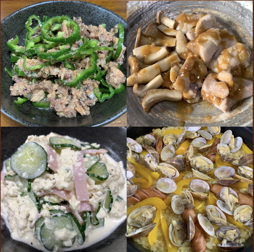 ピーマンと秋刀魚の缶詰の和え物。