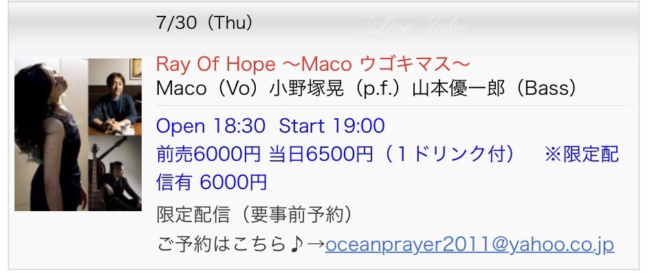 わたしに、小野塚さんとLiveをご一緒していただけるご縁をいただいたのは、jukeさんからですので、
