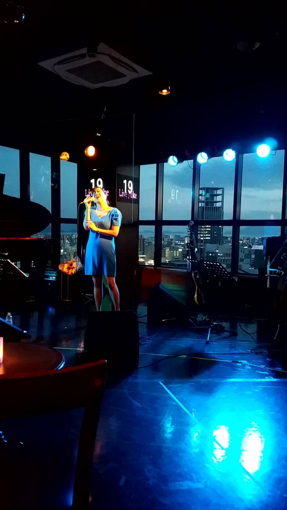 お客様からいただいた、Live中のお写真を見ると、照明の反射は大丈夫そうでしたが、ボーカルから見ると、自分の顔が鏡のように見えていまして…笑