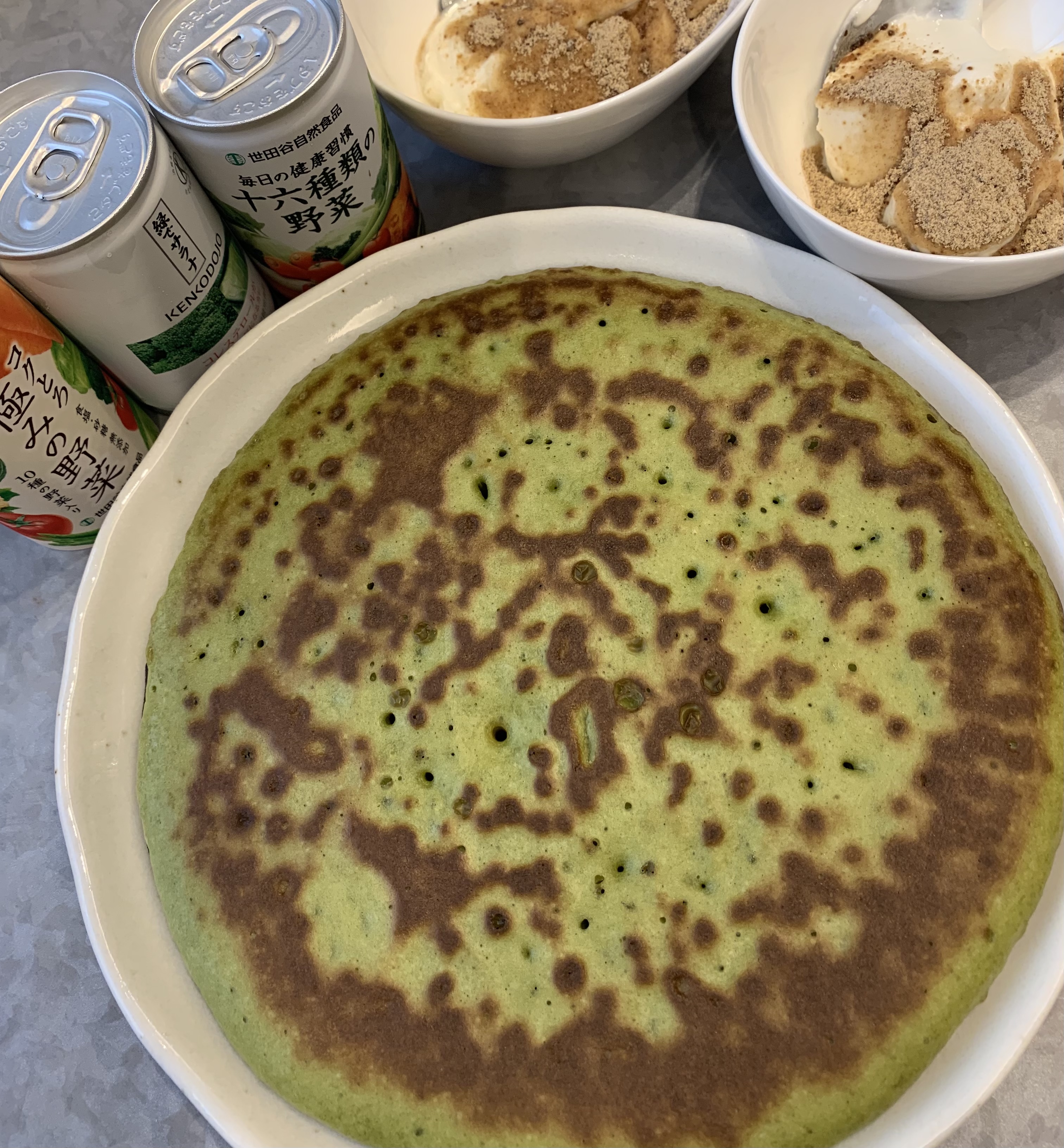 ホットケーキに青汁粉末を入れてみる。