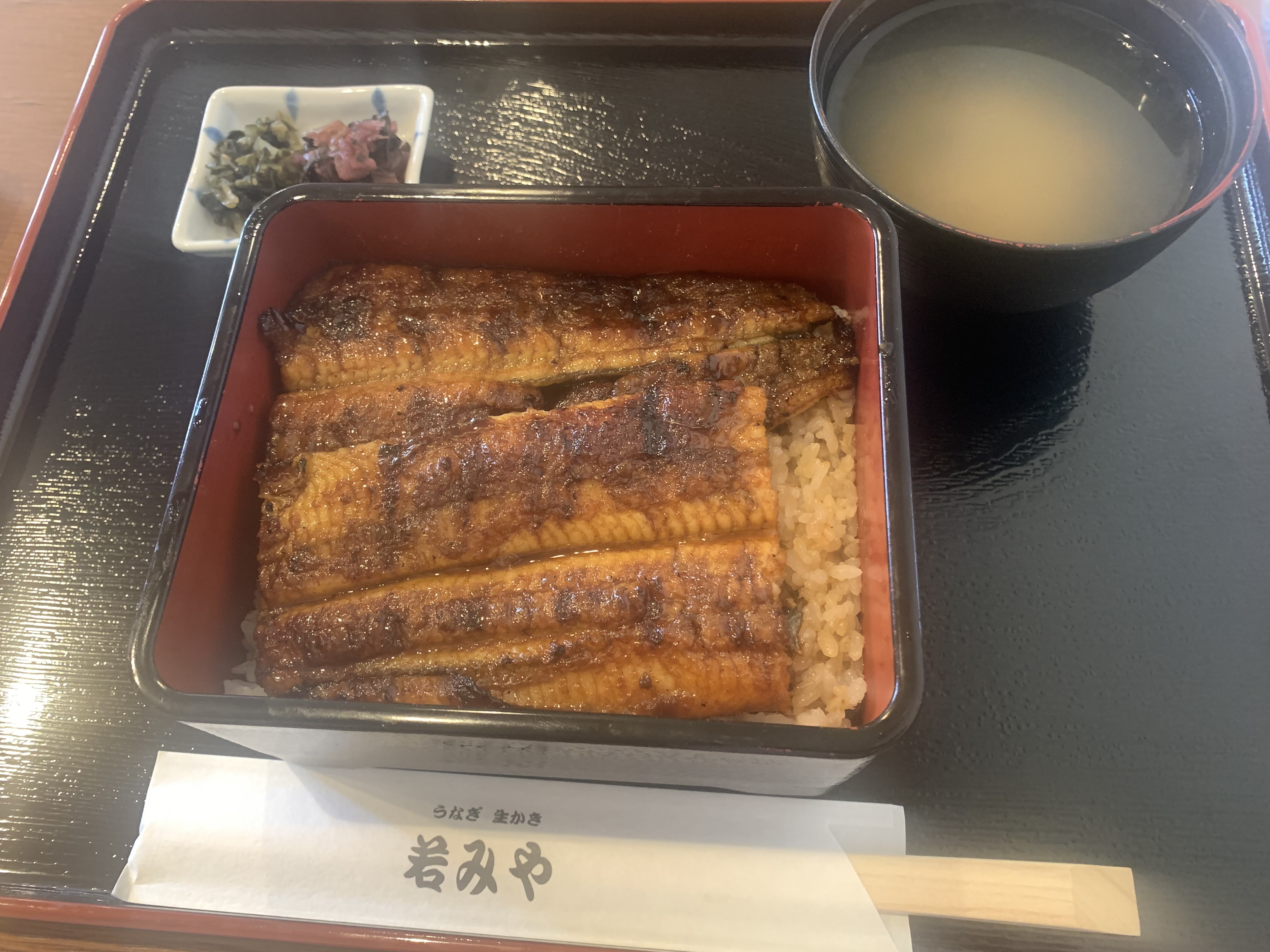 店員さんに「 “特上” と “特” は味が違いますか?」と尋ねると、「同じですよー。ご飯の量も同じで、鰻の大きさが多少違いますが、ほんの少しです。私なら“特”にします。」と答えられたので、“特”にしました(*´∀`)♪素敵な店員さん!