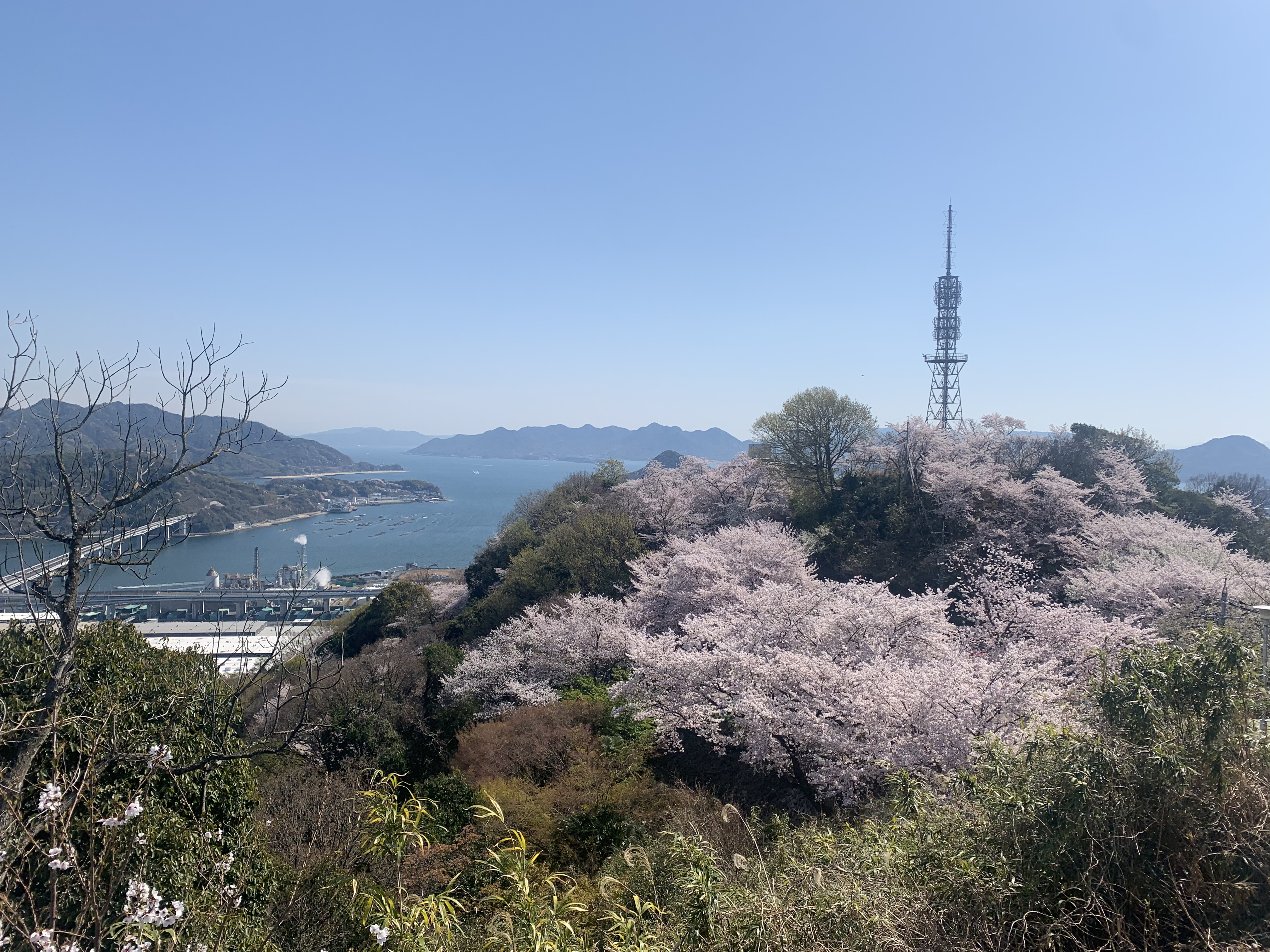 広島市の桜の名所のひとつですが、頂上の広場へ行くまで、山道はずらり車が並んでました。