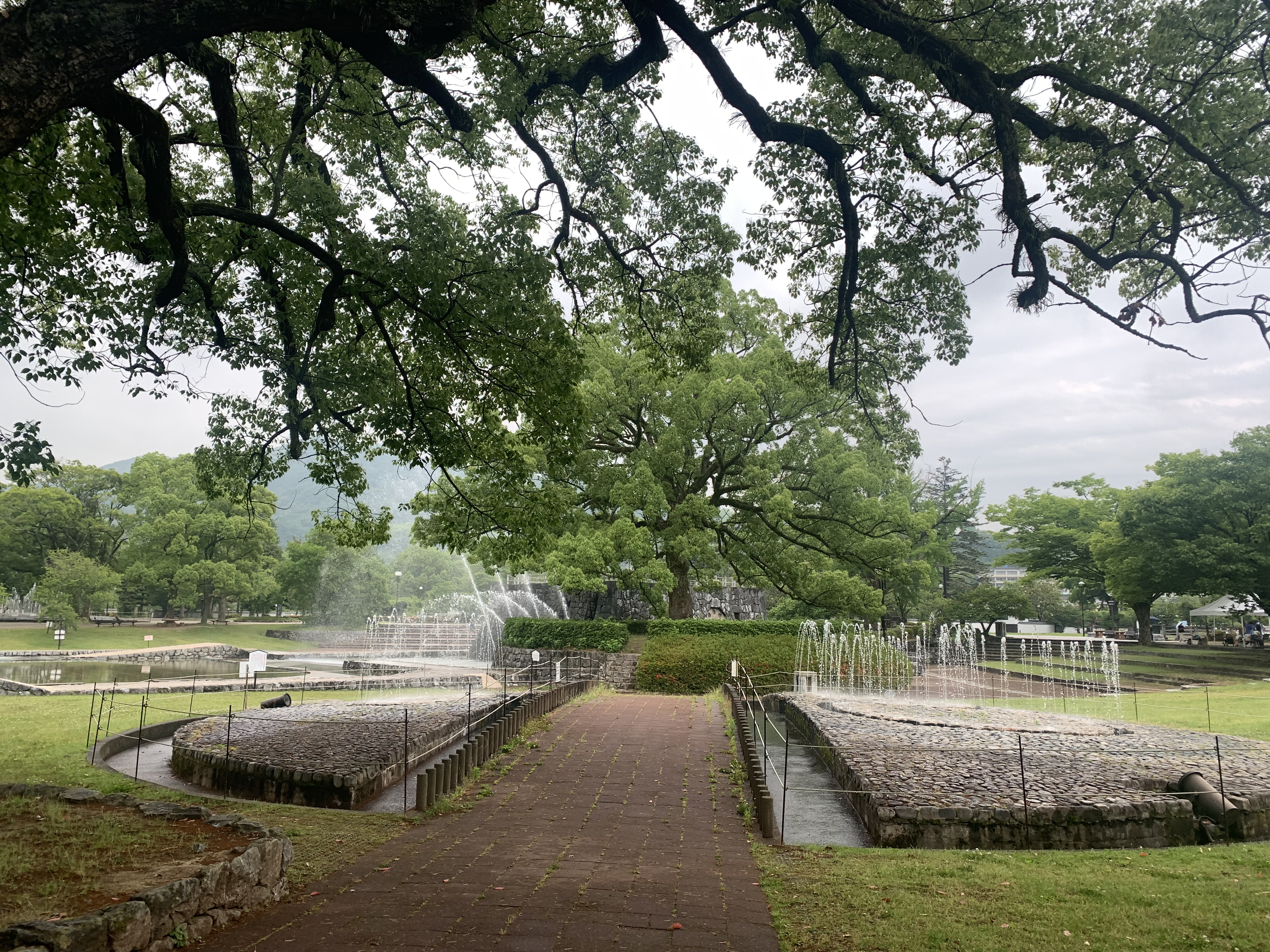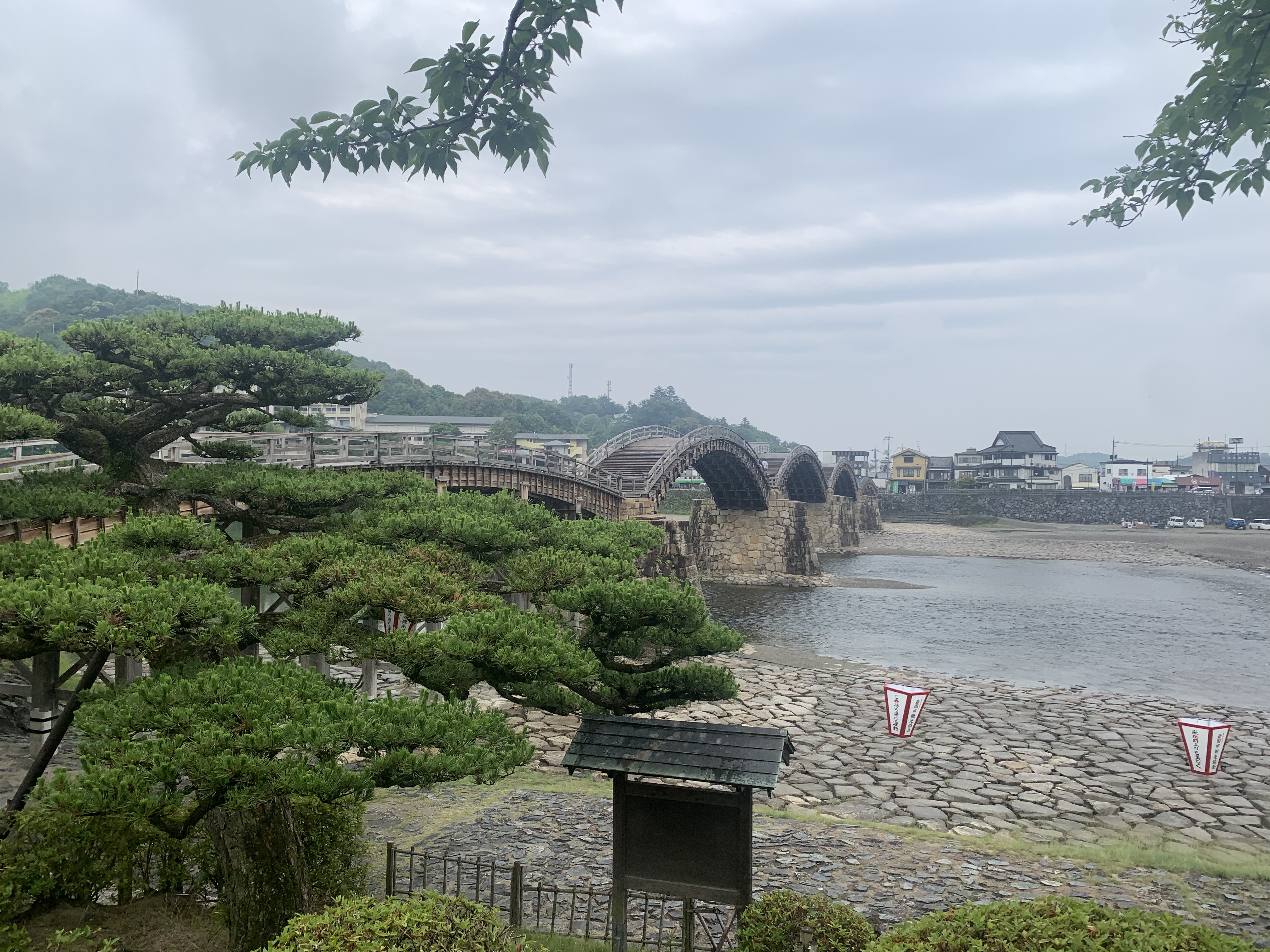 雨の錦帯橋も風情を感じます。