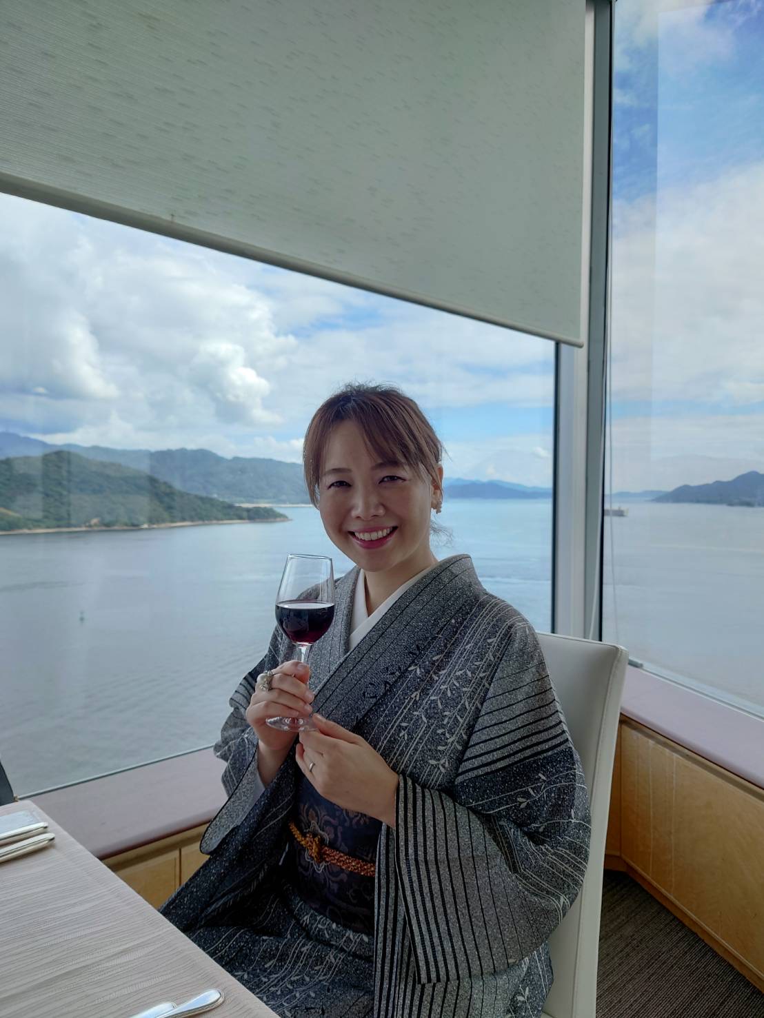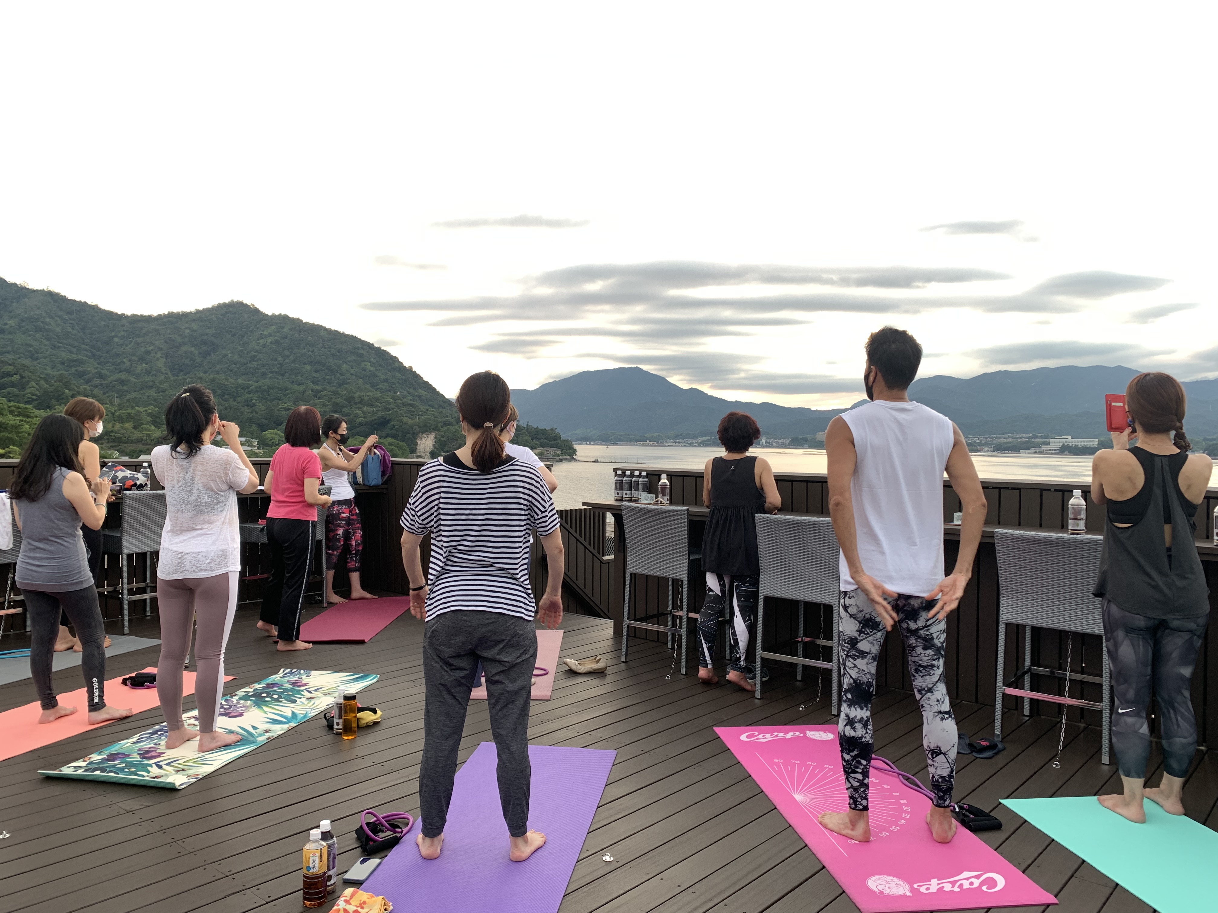 お写真は、9/10宮島〈錦水館〉様の屋上テラスで開催された「満月ヨガ」の日。