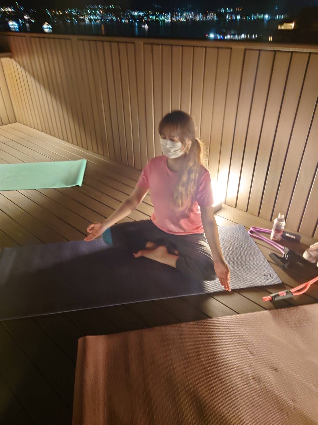 夕日を見ながらヨガをして…
