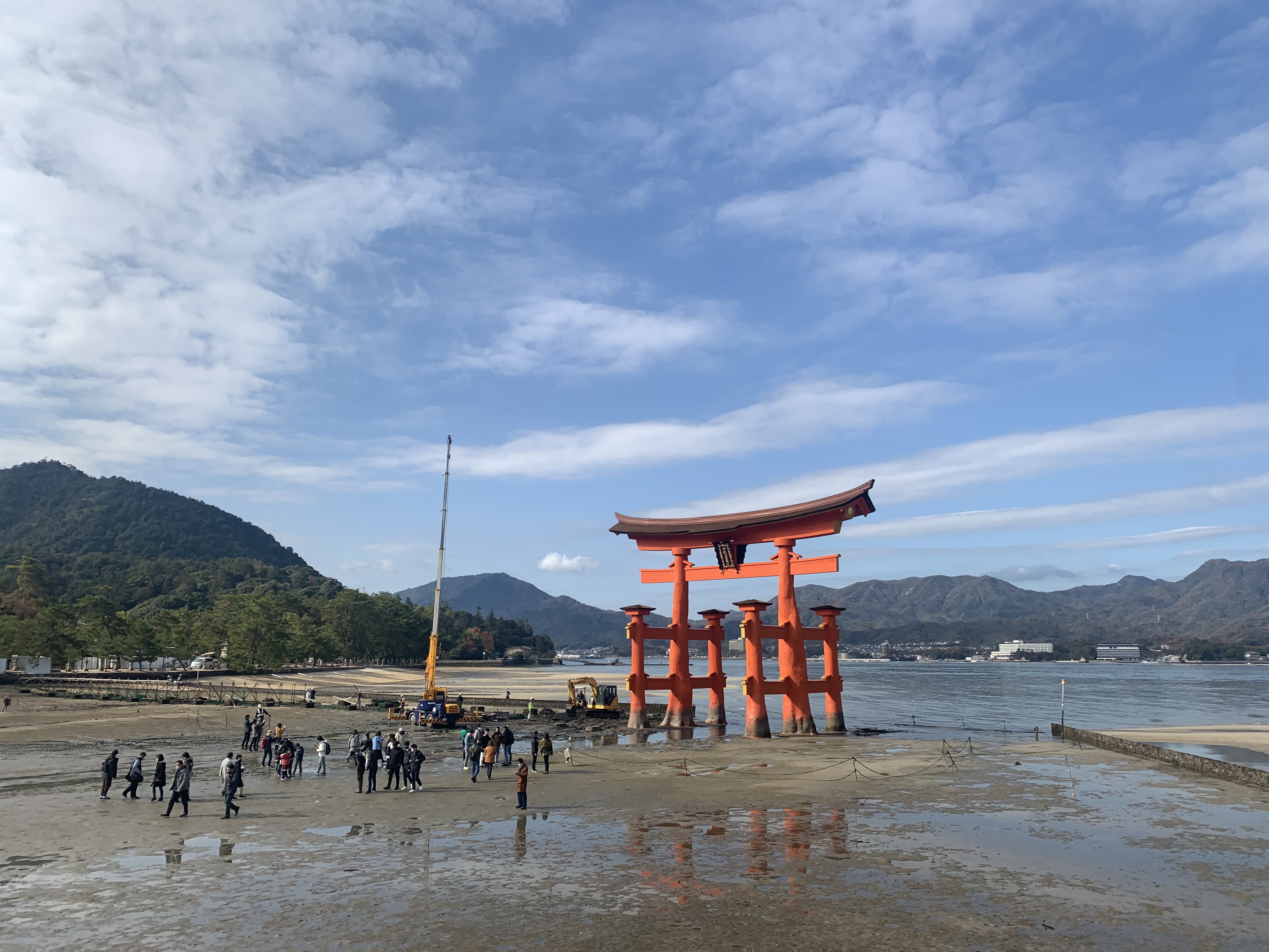 嚴島神社の大鳥居は、11月27日で足場を歩ける一般見学を終え、その足場撤去が始まっています。