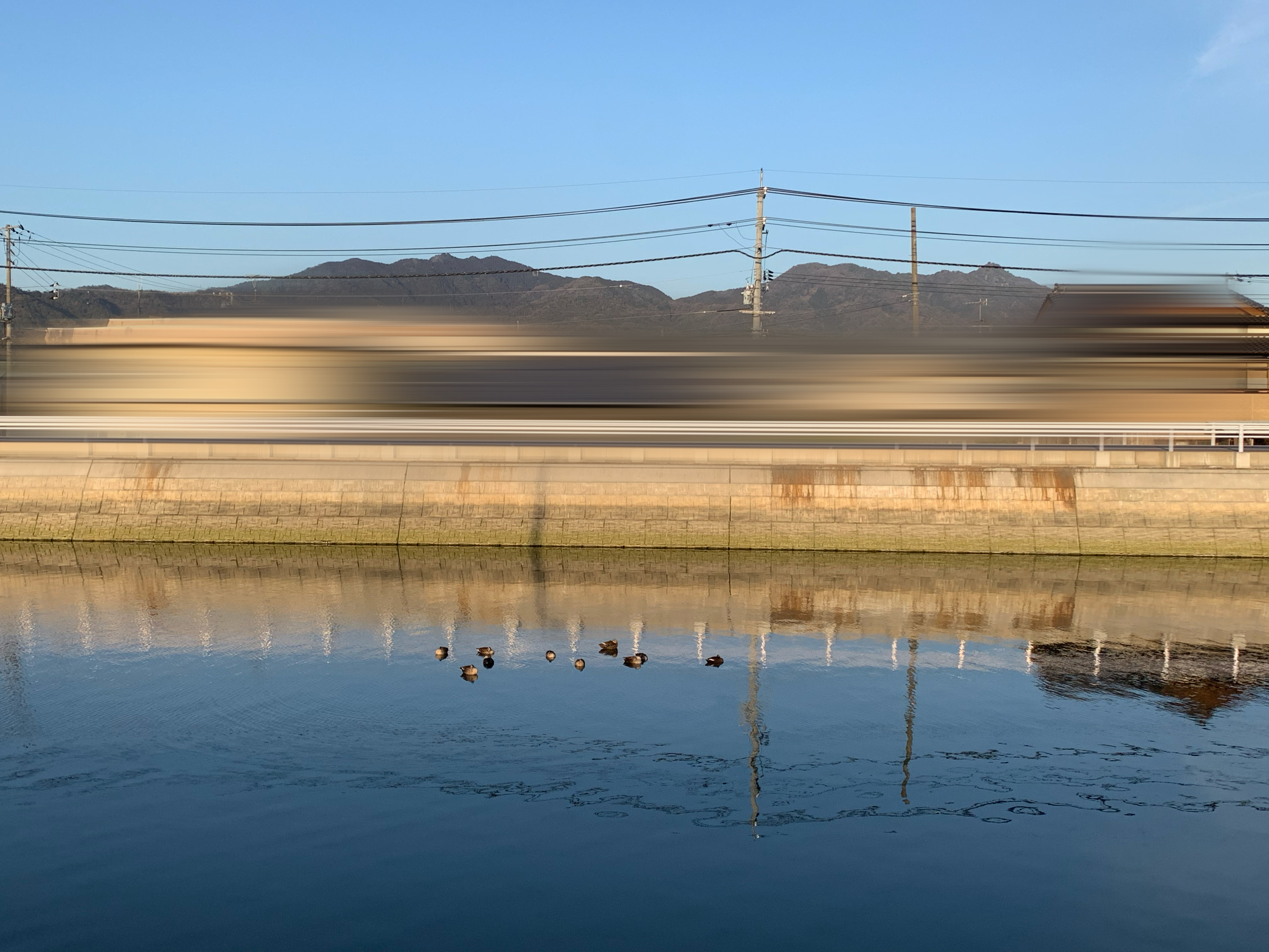 夕方、ジョギングした時の可愛い風景写真も載せよう(*^^*)鴨?の家族かな。