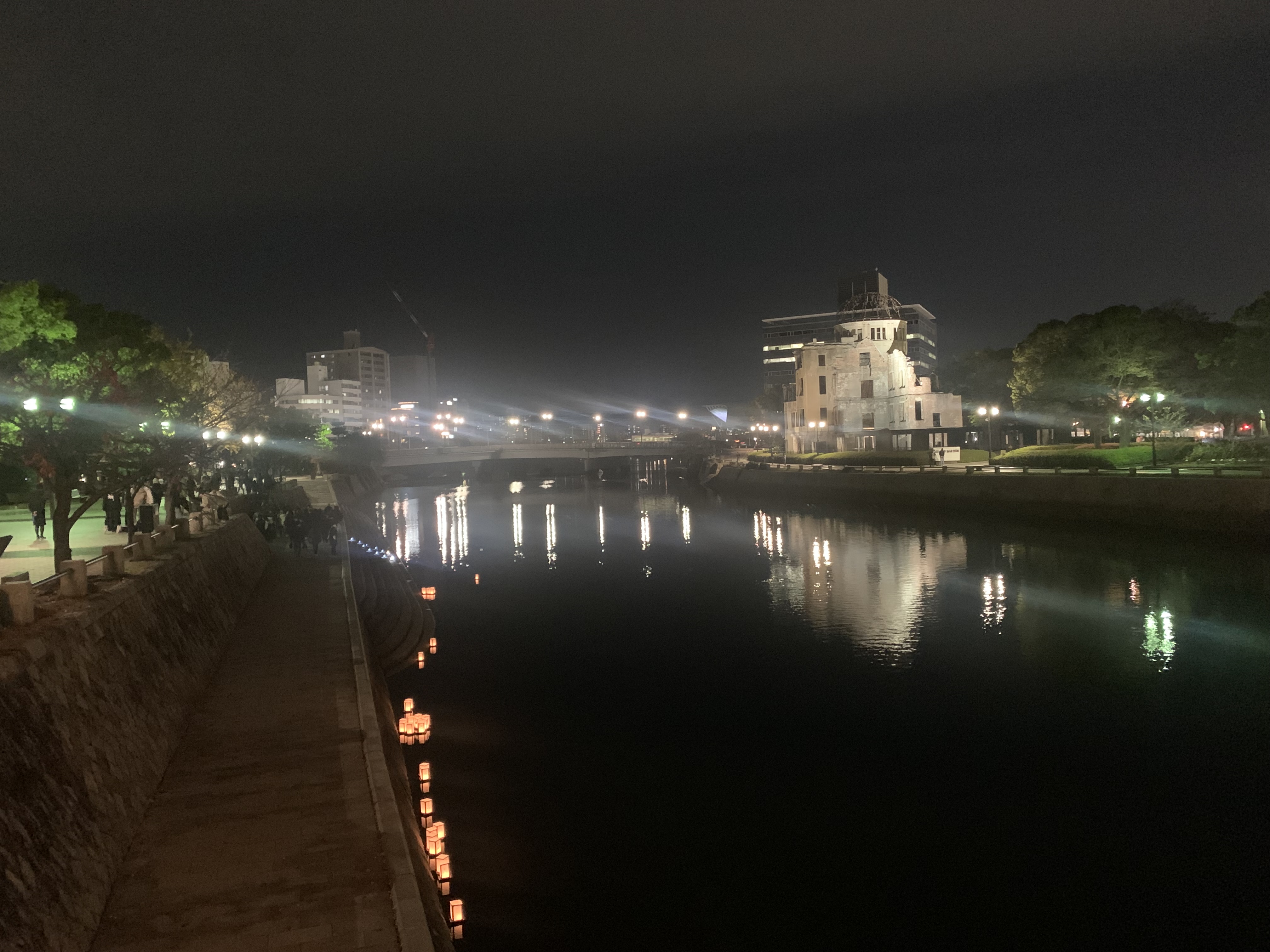 夜の原爆ドームは幻想的。