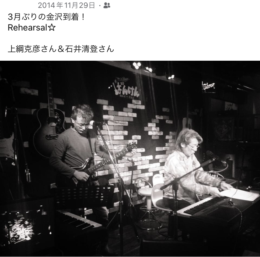 9年前の今日は「金沢」でライブだったらしい。レイニーウッドのキーボード上綱さんとギター石井さんと3人。