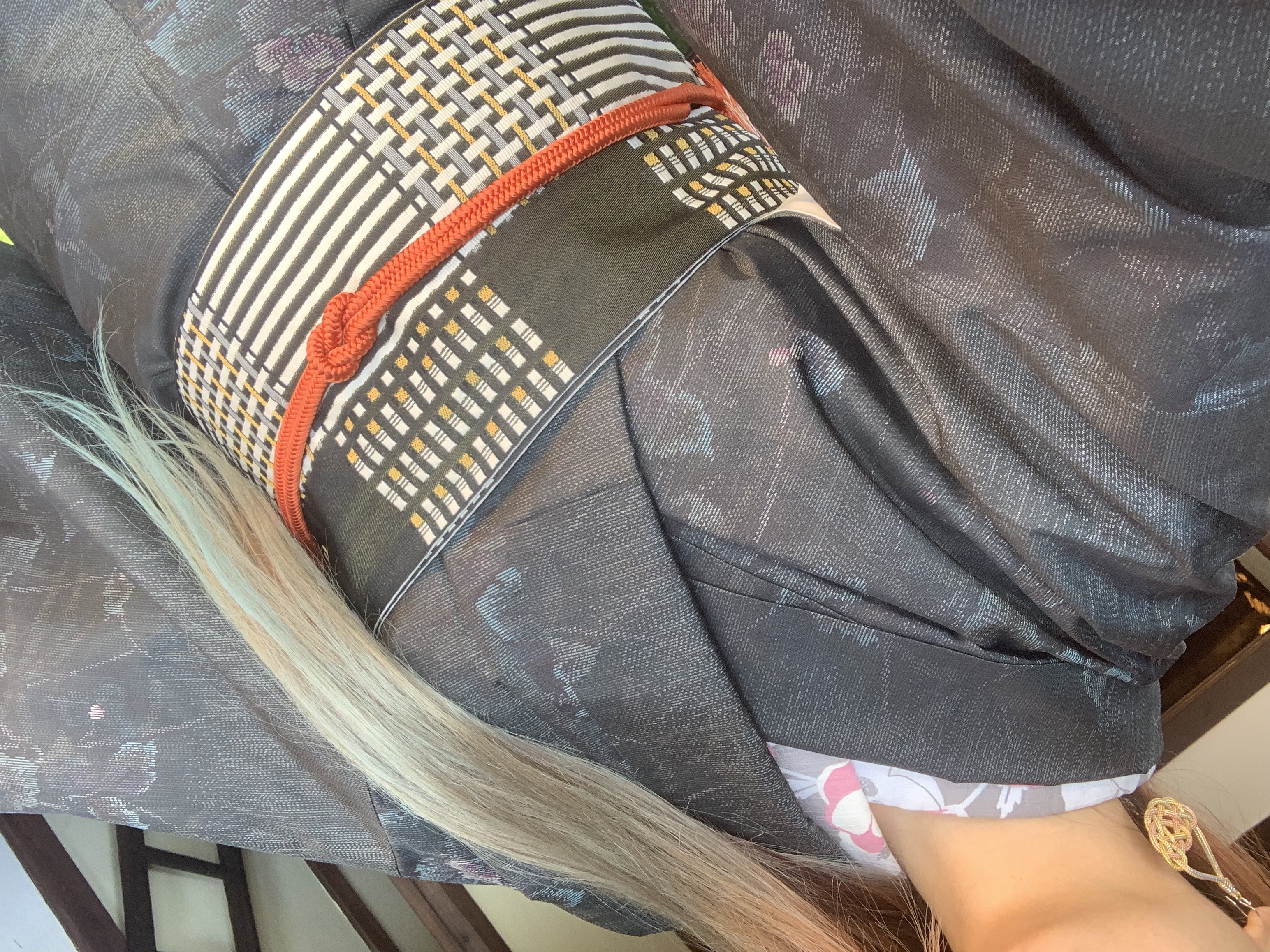 初めて着付ける大島紬。