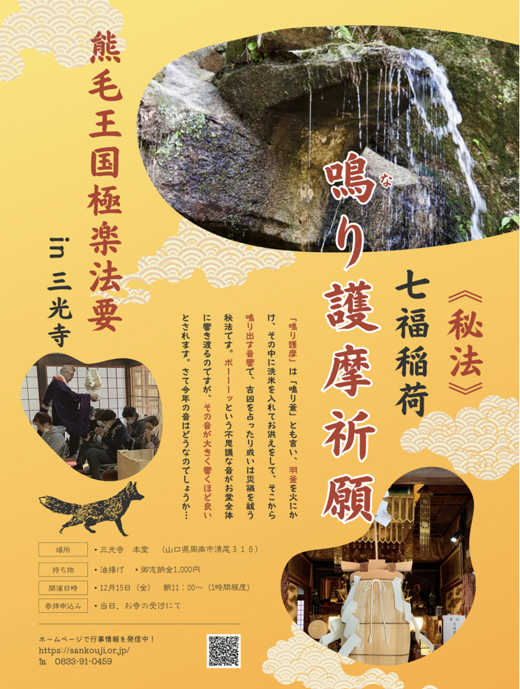 15日(金)に奉納歌唱させていただく、山口県周南市の『新宮山三光寺』様へ