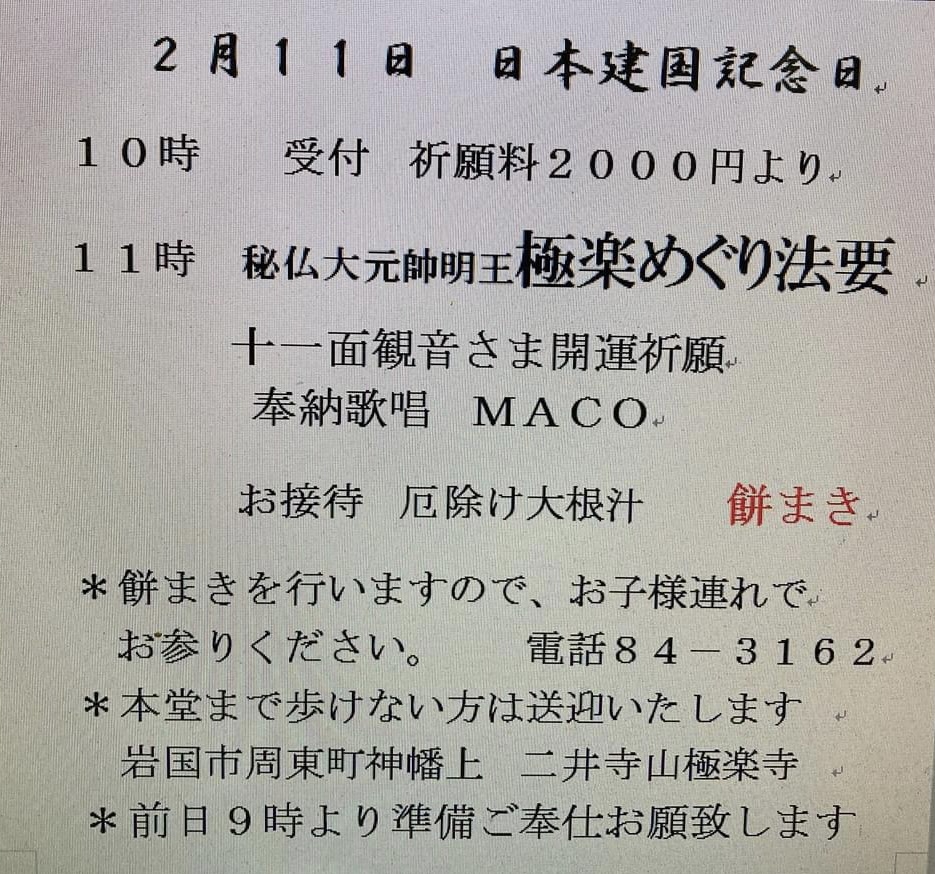 岩国市の二井寺山極楽寺様で奉納歌唱させていただきます。