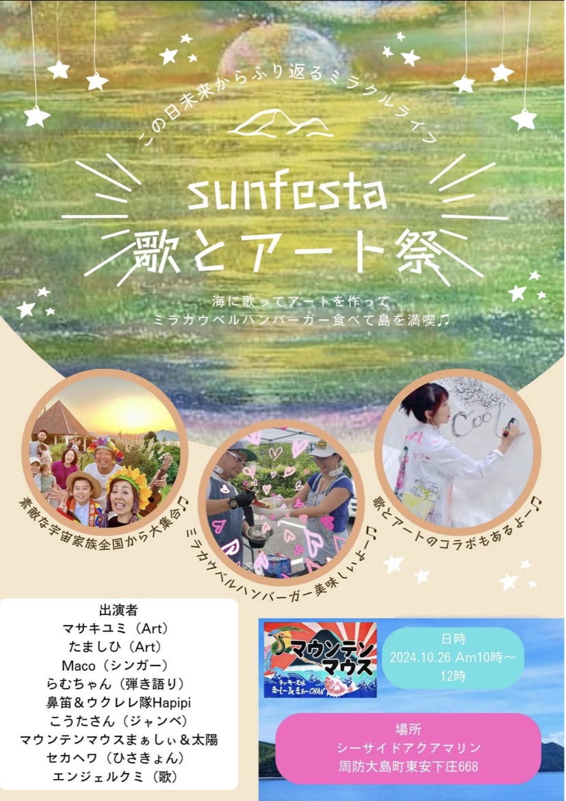 今週土曜日は、山口県の周防大島で開催されるアートと歌のイベントに出演させていただきます。
