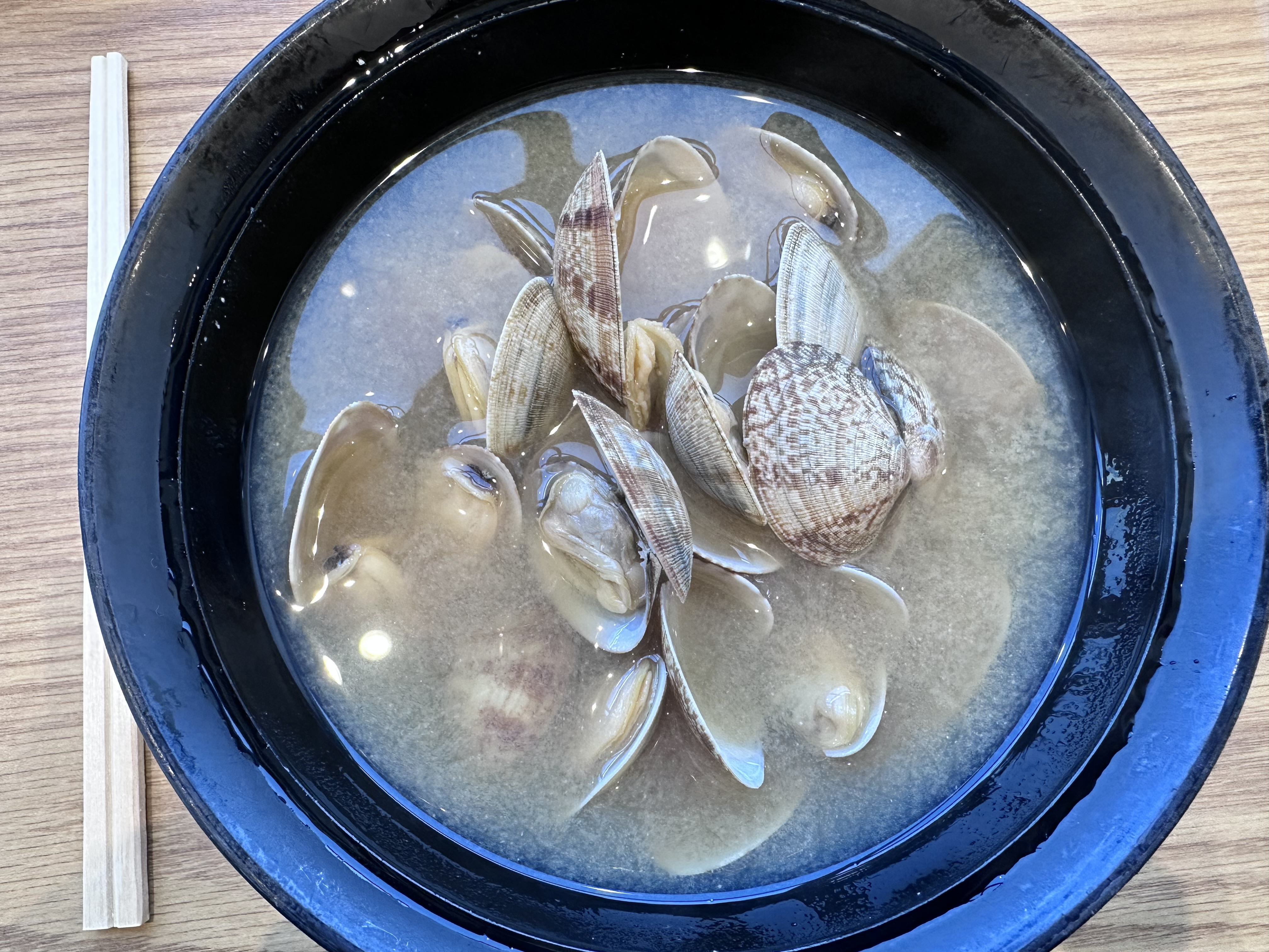 写真3.めかりパーキングで食べた貝汁(笑)