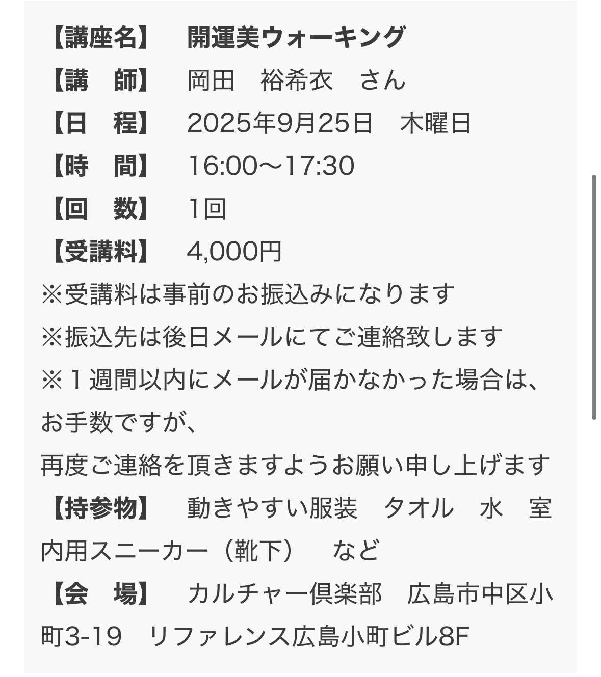 また来週9月25日(木)は、広島市中区小町にある〈リビングカルチャー倶楽部〉にて、1day講座も開催。