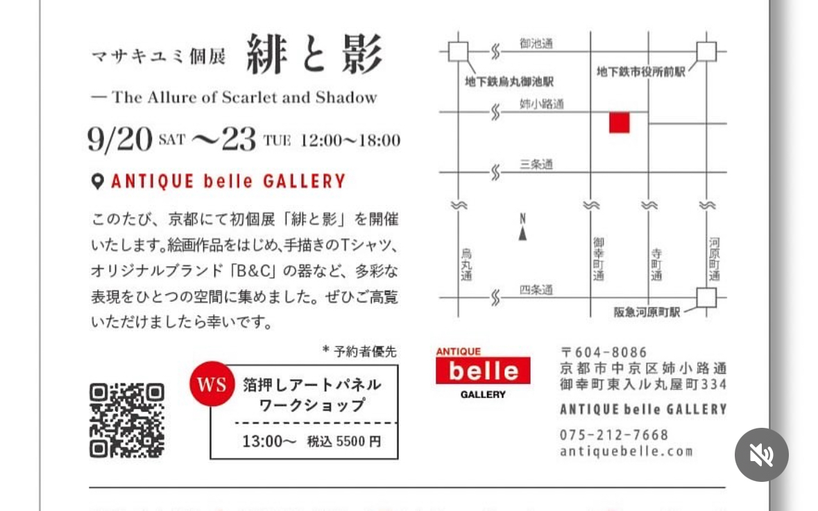 時々、アートパフォーマンスでご一緒させていただいている山口県在住のアート作家マサキユミさんが、京都で個展を開催。