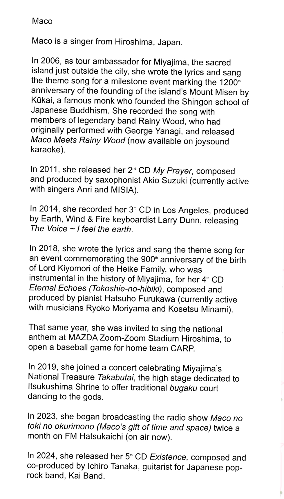 来週の福岡県での出演に向けて、この度、初めて英訳のプロフィールを作りました。