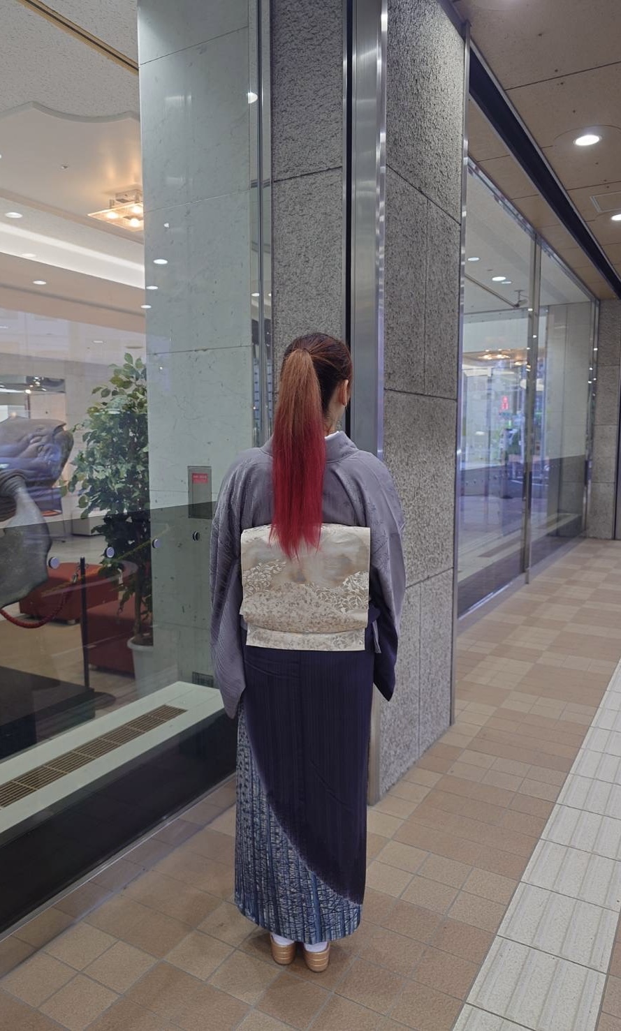今日お着物は、コンテスタントさんやランウェイ出場の皆様のきっと『華やかであろうお着物姿』に対して…私は目立たないようにと思案してのコーディネート(^_^*)